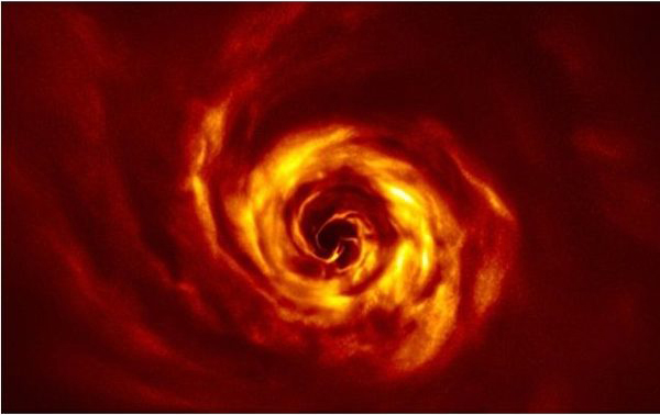 恒星是密集的星际物质云坍塌形成的。现在,科学家首次观测到非常年轻原恒星的星际物质云坍塌过程中还有行星形成的迹象。这说
