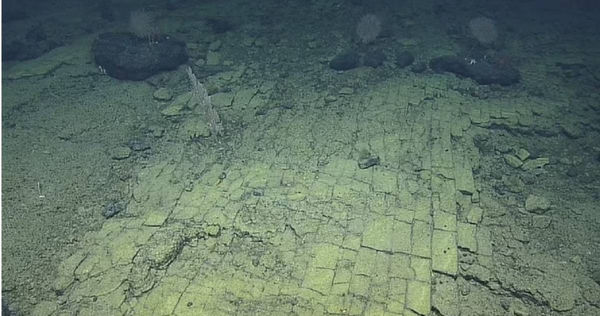 科学家在海底一个山脊上发现看似黄砖铺成的道路。(The Ocean Exploration Trus