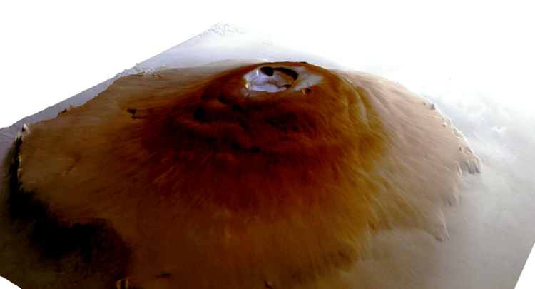 火星上的奥林帕斯(Olympus)盾状火山是太阳系内已知最大的火山,高达25公里,几乎是地球珠穆朗玛峰的三倍高,占