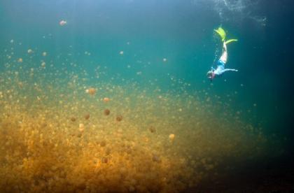 密克罗尼西亚群岛的艾尔莫克岛茂密的森林里有全世界最让人害怕的湖泊:水母湖。水母湖也是一处淡水潜水胜地,因为湖里到处游