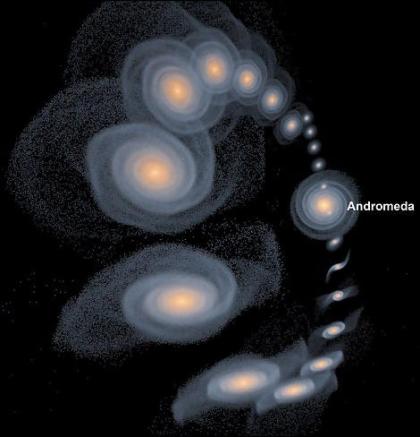 科学家认为星系经历不断与周围星系合并的过程,最终发展到今天的状态。一组科学家使用电脑模型,第一次推出一份银河系完整