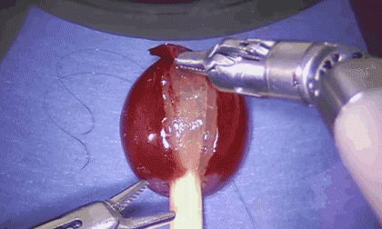 优雅而又稳定的穿针引线,成熟稳健的缝合了新鲜葡萄上开裂的葡萄皮,这不是什么手术室新来的实习医生,而是一台名为达芬奇手