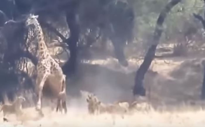 谁说前腿有力能踢死狮子的成年长颈鹿就不会被狮子攻击?我们看到1
