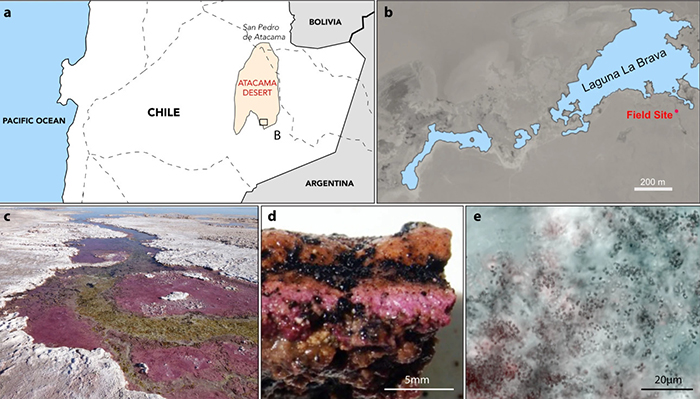 研究团队在Laguna La Brava上发现呼吸砷的微生物。。(图/communications