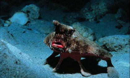 红唇蝙蝠鱼:红唇蝙蝠鱼生活在加拉巴哥群岛海域,它是一种可怕的海洋鱼类,能够使用鱼鳍在海底行走,最令人印象深刻的是它的