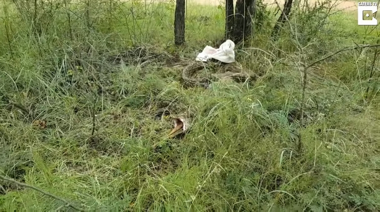 当地的村民怀疑一条巨大的蟒蛇吞吃了它们的牲口,但是把它劈开以后才发现,这货肚子里竟然装了几十只蛇蛋。