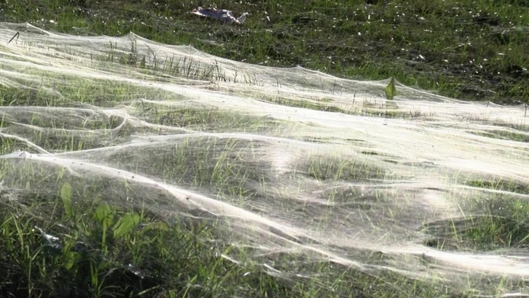 绵延近半英里长的蜘蛛网,笼罩田纳西州曼非斯附近的田野。这幅引人注目的景象,可能是幼蛛试图利用蛛丝从它