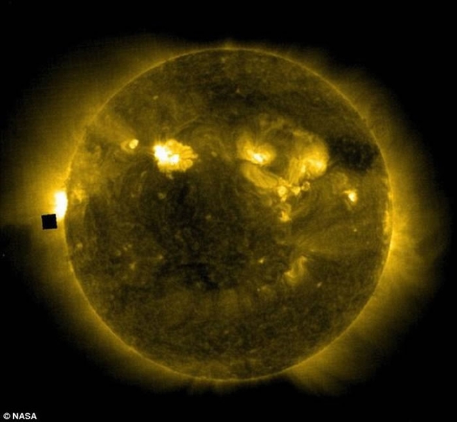 UFO爱好者们常常到处寻找一些细微的细节来提出自己的一套理论。比如这张太阳照片上的一小块黑色区域