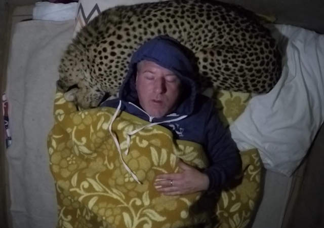 天啊好羡慕可以跟大猫一起睡觉喔--!!有点替他担心的同时真的超级羡慕!!这位《把猎豹当枕头睡觉》的男性,其实是动物学