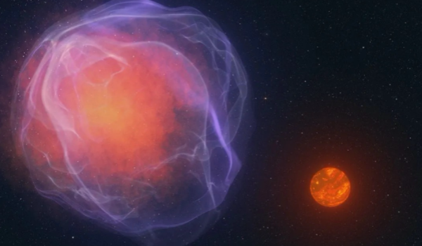 超新星SN 2013ge及其伴星的艺术假想图。(NASA, ESA, Leah Hustak (ST