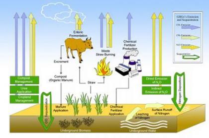 农田生态系统温室气体排放示意图