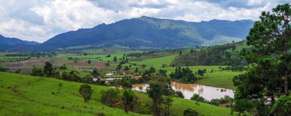蘑菇形的乌烟瘴气在身后紧随,我(原作者,下同)骑着摩托车驶出崎岖不平斗折蛇行的丰沙湾,这是在老挝首都