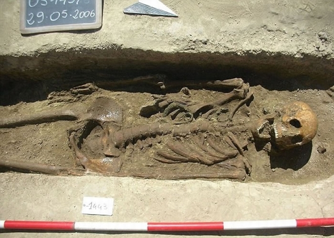 2010年意大利出土了一具女子遗骸,这个骸骨是中世纪的,她的年龄在25到35岁间。她的罕见之处是因为她在墓穴