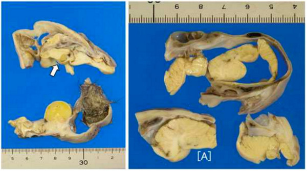 手术台上躺着一名16岁少女,她因为腹部不适,正在接受阑尾切除治疗。医师的手在她腹腔内探索,却意外在卵巢位置,找到一颗直径10公分的肿瘤。医疗团队小心翼翼将肿瘤切开,赫然发现里面包了一团油兮兮的头发,而发丝之下,还有一颗带着颅骨的“微缩脑”。