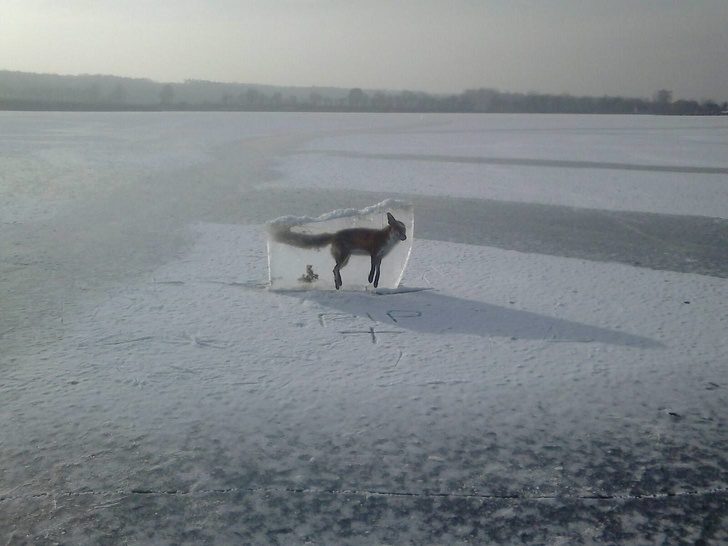 4. 被冰封的动物。事实上这种情况并不罕见,即使动物知道薄冰的危险点,有时候还是会因为饥饿或其他因素 (像是被天敌追杀),让它们跑到冰上,最后不小心淹死、被冰封。