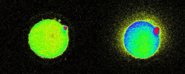 在此实验中,研究团队用一种精子酶刺激卵细胞(根据美国法律,出于研究目的而使精卵结合是非法的)。他们观察到卵细胞内部钙浓度的增加,促进了锌的释放。之后,锌会结合为小分子,并散发出荧光,被照相显微镜拍摄下来。