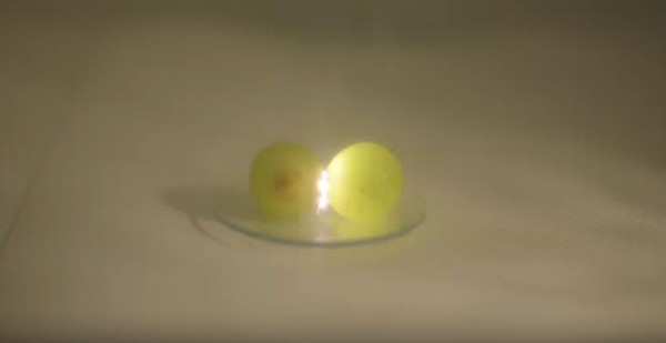 如果把一颗葡萄对半切开,并保持连接两瓣葡萄间的“皮”,再放到微波炉里加热,几秒后葡萄就会喷出火花。综合报道指出,19日刊登在《美国国家科学院院刊》(PNAS)期刊的研究发现,将对半切开的葡萄拿去微波,之所以会产生火焰的关键在于两个相接近的、圆形状、富含电解质的含水球。