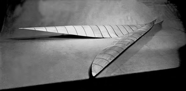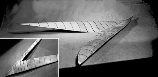 这是一个扭曲且反挠的超音速机翼模型,用木头制成,设计用于进行风洞测试。它的故事是这样的:
