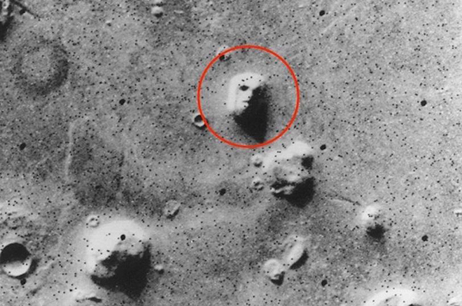 当美国宇航局的海盗1号飞船在1976年围绕火星运转时,拍摄到了这张与众不同的照片,我们可以从照片中看有一片星球区域酷似一张人脸。