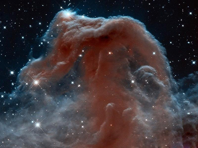 2013年美国宇航局的哈勃太空望远镜在猎户星座拍摄到这张美丽的照片,它也被称为马头星云。与所有的星云一样,它也是有尘埃和气团组成的。