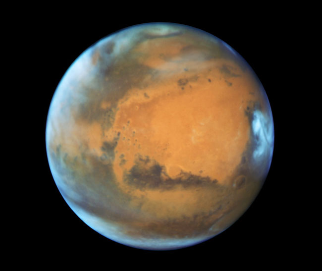 但是现在我们所知道的是,地球上有着适合生物体居住的各种环境,而火星上的居住形势却极为严峻。作为庇护生物体的一种不可或缺的物质——大气层在这其中扮演着强有力的角色(没有了足够的大气层,星球上的江、湖泊和雨水等都不能形成)。科学家研究发现,火星不像地球一样存在着地磁极,火星仅在表面存在一定的被磁化的地壳。