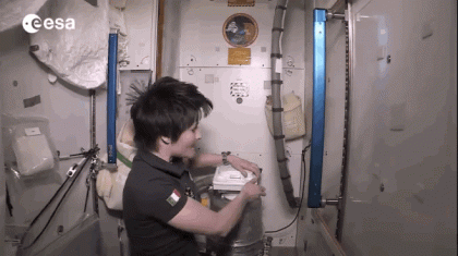 在欧洲航天局的一个视频中,意大利宇航员Samantha Cristoforetti展示了国际空间站的厕所,它看上去多少和储物柜差不多,不过有两个很明显的差异。