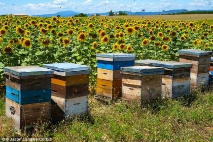 法国Valensole的蜂巢。通常情况下,养蜂人使用化学药品来对付寄生螨虫。