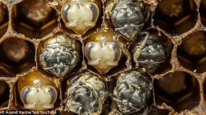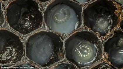 受国家地理委托,摄影师Anand Varma为蜂巢里的蜜蜂拍摄了一段60秒的短视频。视频不仅记录了蜜蜂在生命的前21天从幼虫变成蛹的过程,还记录了对幼蜂造成巨大伤害的寄生虫狄氏瓦螨。