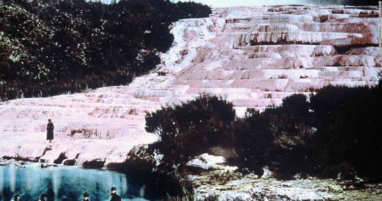 在火山爆发的末期,意外摧毁了很美的自然结构,它叫粉红色和白色阶地(Pink and White Terraces),有时被称为“世界第8大奇景”。