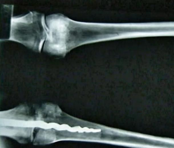 研究期间,他们有了惊人的发现:在Usermontu 的左膝中发现了一根9英寸(23公分)的金属螺丝钉,它连接着大腿和小腿,证明将近2600年前就曾实施先进的外科手术。