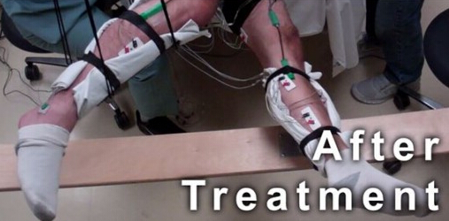 每个瘫痪超过2年的人都经历了共18周,每周1次的45分钟刺激疗程。在最后4周的疗程中并结合了丁螺环酮(buspirone)药物治疗。丁螺环酮会模拟神经传导物质血清素(serotonin),之前已经被证实了可以用来帮助脊髓受伤的小老鼠做行走动作。在研究的最后,这些瘫痪的男子已经可以不靠刺激移动他们的双腿。