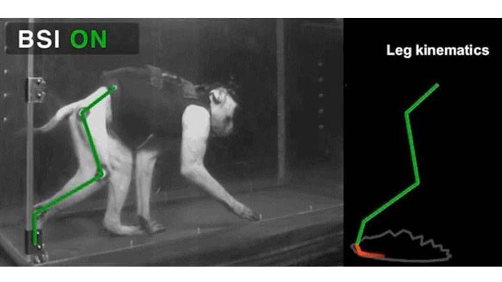 研究人员因此将电极阵列放置在脊椎受伤的猴子的运动皮质上,以便当猴子试图行走时,记录源自脑部这个部位的信号。然后将这个神经活动无线传输到控制电脑,利用一种演算法来辨识编码肌肉屈曲和肌肉伸展的信号。