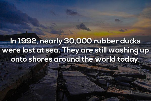 4. 1992年一共有将近3万只橡皮小鸭遗失在大海里,直到今天都还有几只被冲上岸。