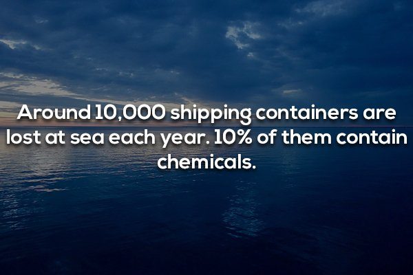 13. 每年都有1万个海运货柜遗失在大海里。其中有10%装有化学物质。