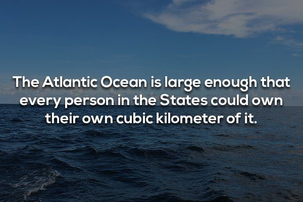 5. 大西洋的面积大到全美国每个人都能拥有1立方公里的空间。