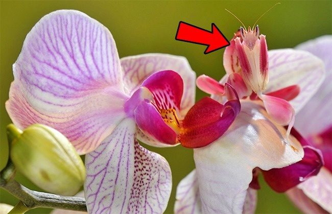 兰花螳螂(Hymenopus coronatus)。兰花螳螂可以在印尼和印度的热带森林中找到,人们很容易把昆虫与和这种兰花混淆,因为螳螂也可以改变自己的颜色以适应周围的环境。而兰花螳螂主要是以其他昆虫为主食。