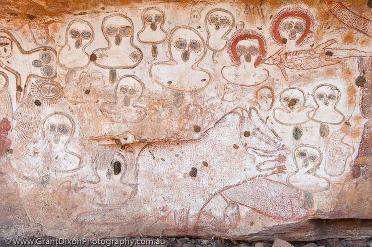 1838年在澳洲的金柏利(Kimberley),有为数不少的石壁画被发现而震惊考古学界,一些异常巨大可达六公尺高的石壁画被称为旺吉纳,金柏利位于澳洲偏远地区,居民和游客都很少,但是有大河以及微红色调壮丽的景观,在这个地区发现的最大石壁画,测量将近有6公尺高,已引起研究学者的注意而提出几种关于谁是石壁画创作者的推论。