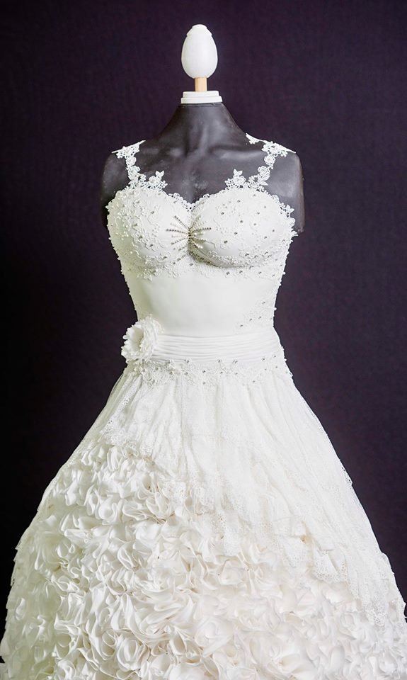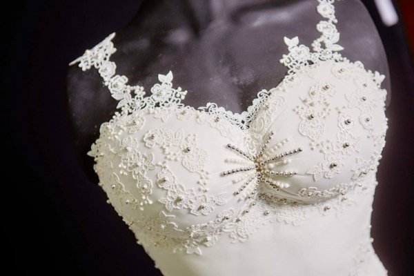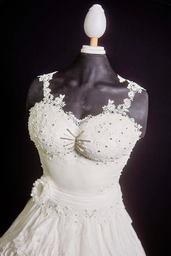 这件看起来错综复杂且带有蕾丝边的裙子,会让任何一位新娘在她的大喜日子那天成为全场注目的焦点。但令人惊讶的是,其实人们根本就无法穿上这件婚纱。因为它只是一个烘焙师们巧妙制作的蛋糕而已,上面所有漂亮的装饰和褶边实际上全部是白色的糖而已。不过它看起来如此逼真,以至于即便你从近距离拍摄的照片中,都无法辨别出这条裙子是真是假。