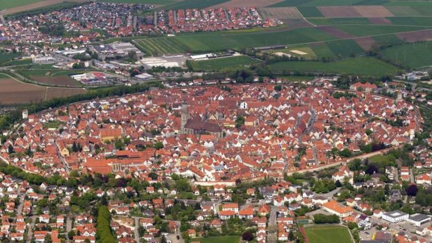 "城墙内的所有建筑都是由受到那颗小行星撞击的岩石建成。"诺德林根镇的居民罗斯维塔·费尔(Roswitha Feil)说道。