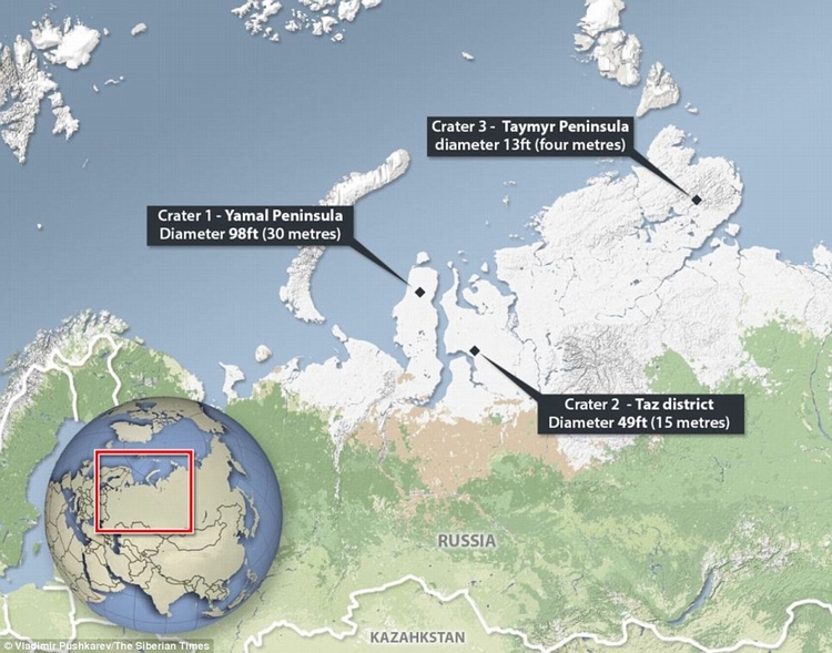三年前,一个神秘的大洞出现在西伯利亚泰梅尔半岛,有 300 英尺深。从它三年前出现开始,这个洞已经变成原来的十五倍大。“ 根据先前尚未报导的科学数据,自从这个洞在 2013 年的爆炸中形成,在接下来的一年半里,它的尺寸已经增加到原来的至少十五倍。”( 来源 )