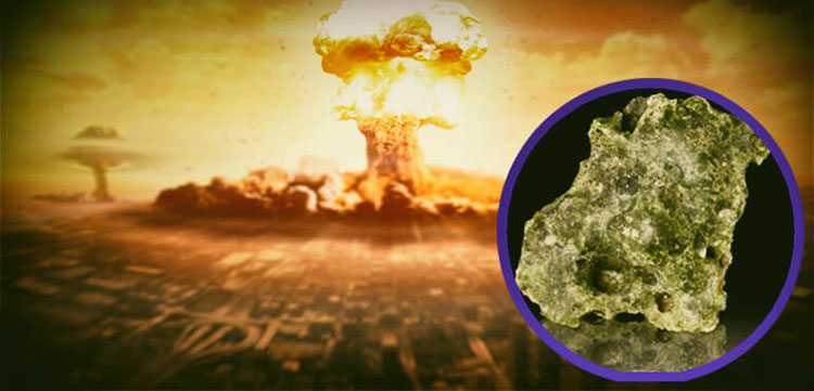 这些玻璃碎片很像在阿拉莫戈多(Alamogordo)原子试验场找到的碎片,这是现代世界的第一个核子装置引爆的地点。当温度超过华氏3300度(摄氏1800度)时会形成沙漠的玻璃碎片,造成沙子熔化并混合在一起。