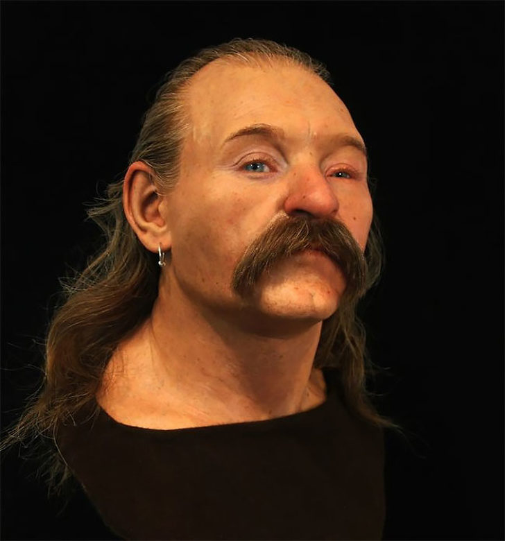 他去世时至少45岁,无法得知死因。但是他的骨头上有些东西对研究人员来说具有重要价值:他的DNA。分析显示他的头发颜色为红色、金色,眼睛颜色蓝色和皮肤颜色为苍白的。因此这成为世界上第一个重建成功的维京人,都是从保存的DNA中发现了这些特征!