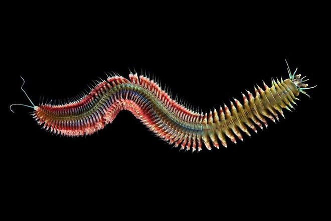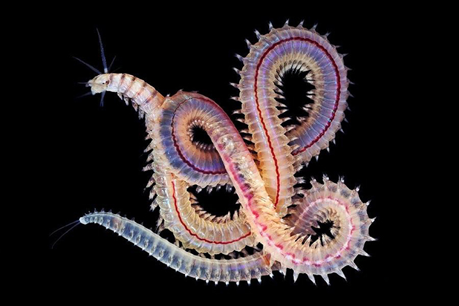 Semonov分享了自己在探险期间拍摄到的一些照片。这张照片中是主要存活在深海中的一种多毛纲动物Polychaete。