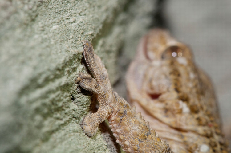 另一方面,适应了吉拉利亚岛的本地物种-欧洲叶趾壁虎,它们的脚趾顶端只有两个黏着点,与摩尔壁虎的“一整片”不一样。它们用脚趾进行攀爬时,就可以利用这些黏着点,如果沾到了灰尘,它们可以把黏着点“整个捲起来”,以防沾灰尘,然后再用锐利的爪子进行爬行。