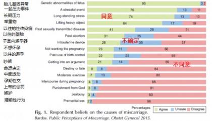 研究结果显示,人们严重低估了流产的概率,55%的人认为发生率仅6%;22%的人错误地认为怀孕期间的生活方式(如吸毒、喝酒、抽烟)是最常见的流产原因,超过了基因问题和药物治疗。另外,男人持有错误观念的人数大概是女人的2.5倍。