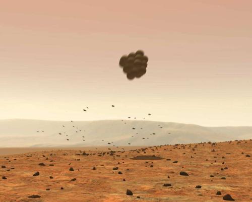第一种方式是气囊缓冲。这种方式适用于轻质量着陆器的登陆,当着陆器在火星表面着陆前,包裹着陆器的气囊充气展开,通过气囊在火星上的弹跳逐步降低高度,实现成功着陆。1996年12月4日发射的探路者号火星车就是采用气囊缓冲方式,成功着陆至火星表面,初步验证了进入火星大气、减速和着陆缓冲全过程的可行性;2003年6月和7月分别发射的勇气号与机遇号这对“孪生”火星车,使气囊缓冲着陆的方式得到了充分验证,成功实现了对火星表面较大范围的巡视。