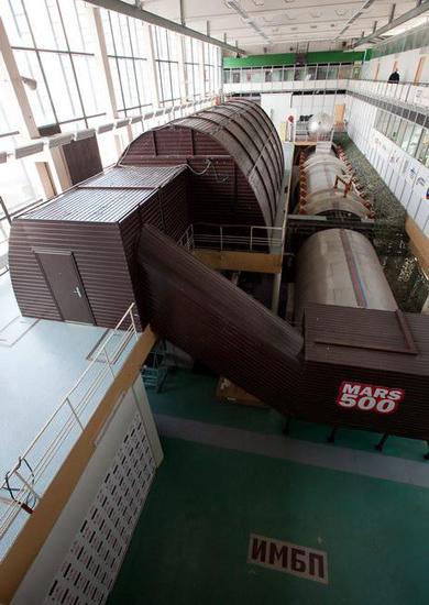 载人登陆火星往返需要500天,如何克服旅途的寂寞、恐惧和疾病,需要在地面开展大量试验。图为俄罗斯开展的“火星-500”生存试验。 封闭试验分为三个部分:前250天为飞船发射和试验飞往火星的旅途、中间30天试验登陆火星、最后240天试验从火星返回地球。在试验阶段,全部志愿者的生活和工作仅限于实体模型航天器,所需资源要求一次装备到位。志愿者不能和外部直接交流,若透过互联网交流会有20分钟延迟。飞船完全自主控制,医学救助通过遥控操作技术实现。包括中国航天员王跃在内的6名志愿者经历了从火箭发射、行星际旅行、火星登陆到返回地球的全过程。