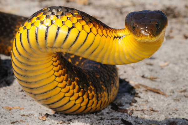东部虎蛇是虎蛇家族中数一数二危险的,攻击时会将上身挺起。