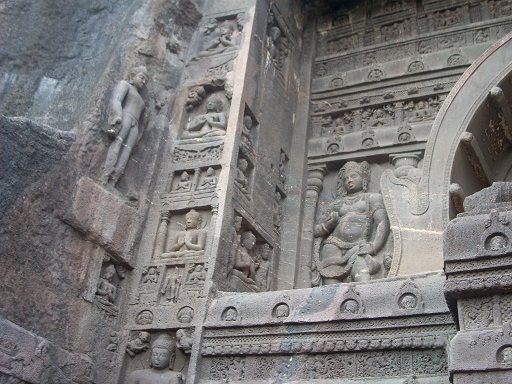 在1819年隶属英国陆军马德拉斯军团的军官约翰.史密斯(John Smith)在孟买郊外丛林中追捕一只老虎时有了令人惊叹的发现,当诱捕老虎时,他碰巧发现在灌木丛中有一个隐密入口的神秘洞穴,本来以为只有一个,谁知道却有29个在遥远的过去雕刻在岩床的巨大洞穴,这些神秘的建筑装饰的极为美丽。