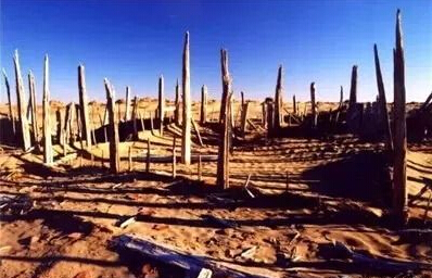 这里便是《鬼吹灯》中的精绝古国,经历了一千六七百年的岁月流失后,重现人世。房屋、寺院、佛塔、田地、古桥、陶窑等遗迹,或被茫茫黄沙淹没,或被高大枯死的红柳沙包覆盖,或被无情的风沙吹蚀得面目全非;一些棺木也因风沙肆虐而从地下露出,尸骸暴野,沉重地述说着这片曾经的绿洲的沧桑历史。
